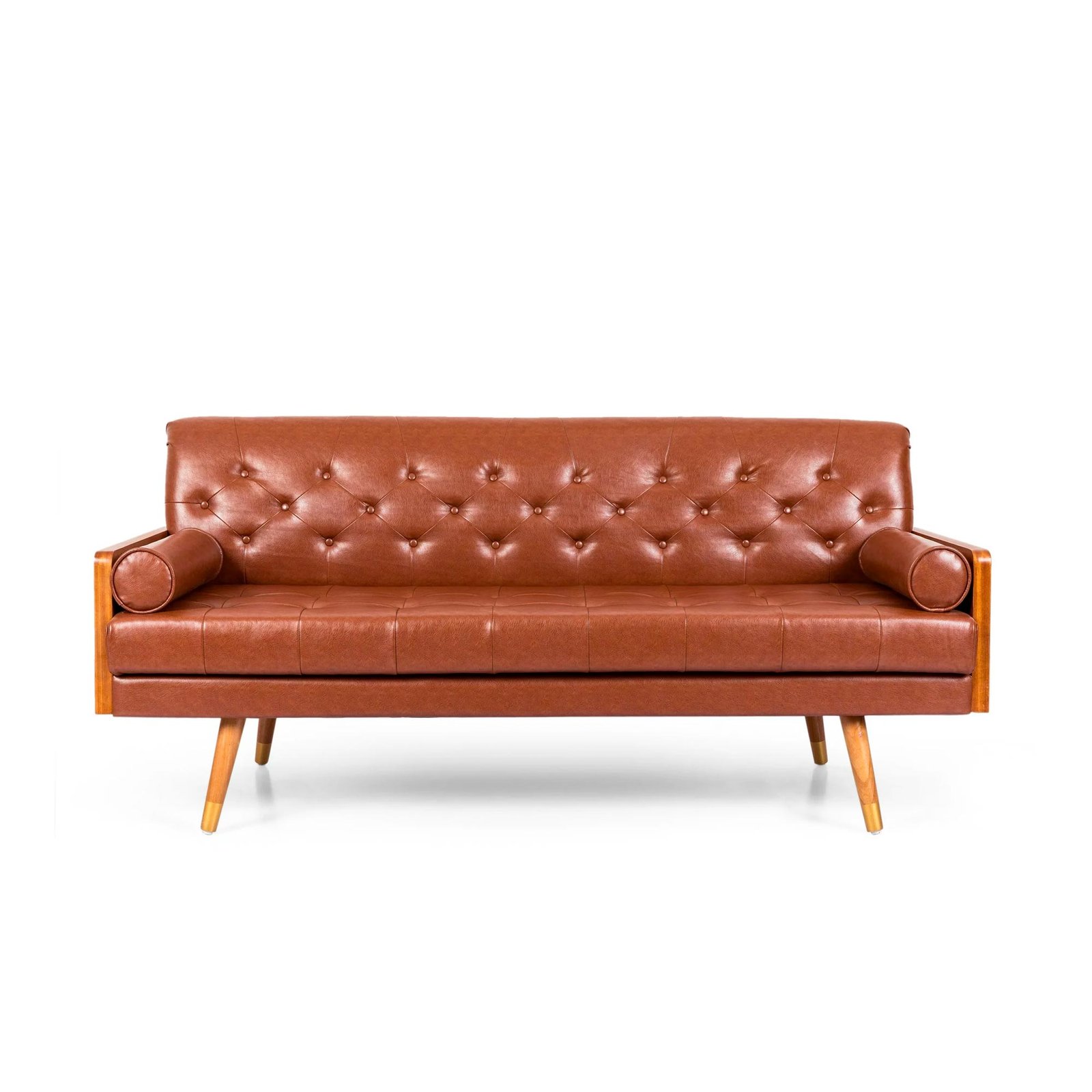 2 reviews for Noble House Marcel Faux Leather Tufted Sofa, Cognac Brown